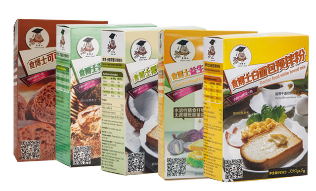 目前面包预拌粉系列已有:白面包预拌粉、椰蓉面包预拌粉(菲律宾进口椰蓉)、荞麦面包预拌粉(精选雁门苦荞麦)、可可面包预拌粉(印尼可可粉)、益生元面包预拌粉(特别添加低聚果糖,并采用木糖醇代替蔗糖,健康时尚上档次)